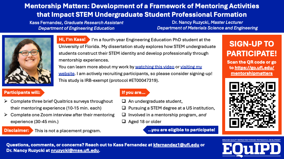 Recommended citation: Fernandez, K. & Ruzycki, N. (2024, October), An Exploratory Study on Post-Secondary STEM Mentorship within Student Organizations. Paper presented at the 2024 FIE Conference in Washington, DC. DOI: 10.1109/FIE61694.2024.10893363